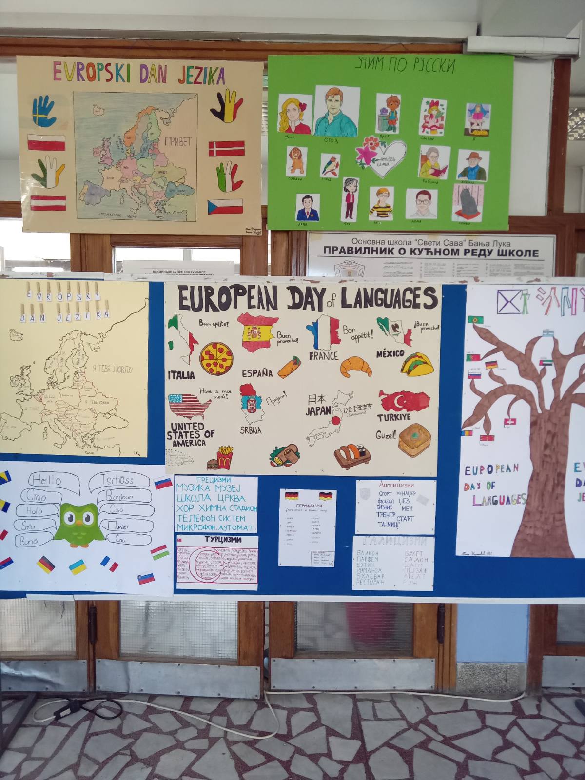 Крај септембра је традиционално у знаку европских језика. Ове године су наставници енглеског, њемачког, руског и српског језика одлучили да обиљеже Европски дан језика великом изложбом ученичких радова, па су холови наше школе су украшени паноима и заставама бројних држава Европе и свијета.
