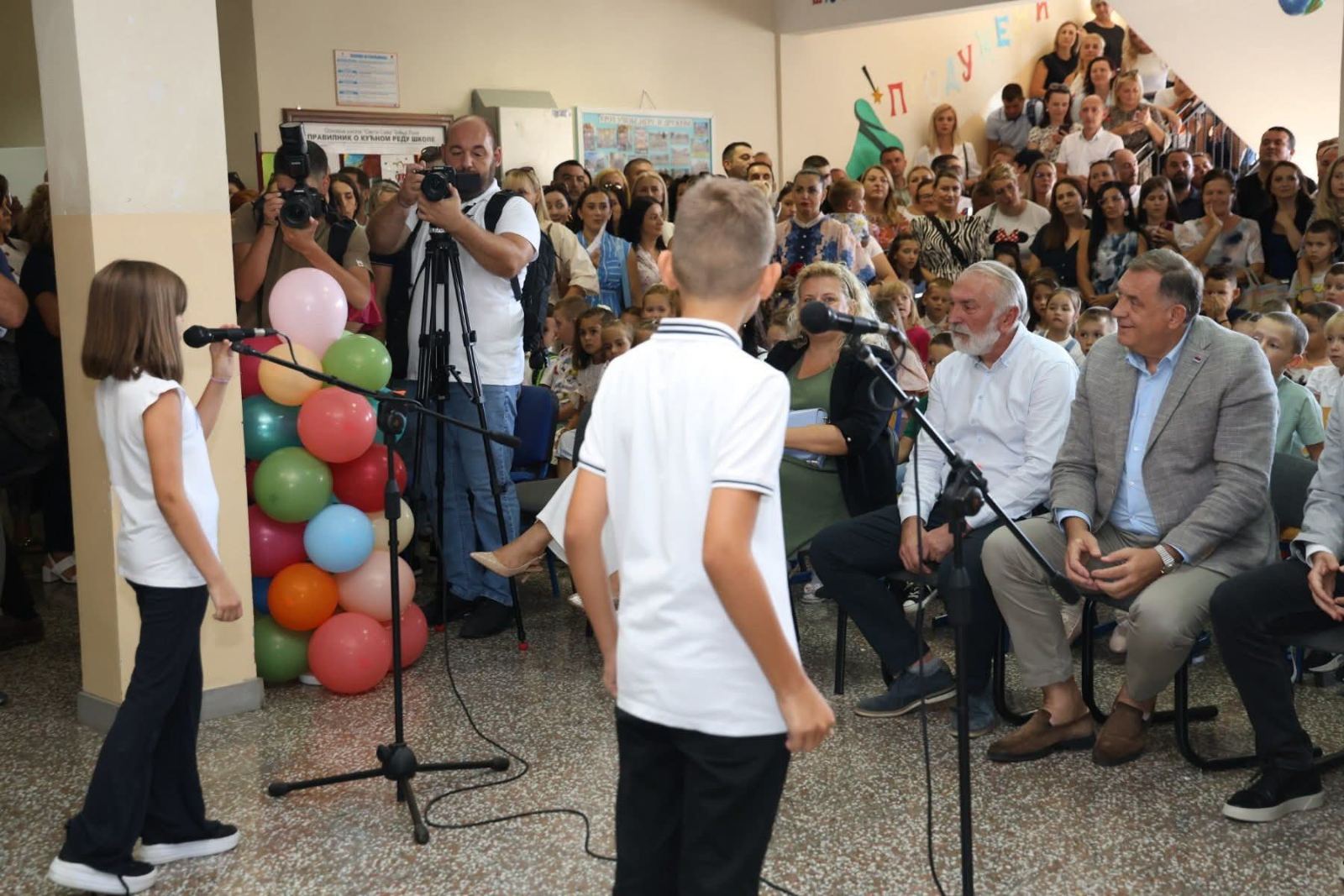 Сваке године први дан у нашој школи је посебан и свечан. За наше најмлађе ученике, првачиће, ученици петог разреда уз подршку њихових учитељица: Бранке Периновић, Милене Штуле, Бобане Леканић, Сњежане Оровац, Миланке Милаковић, Јелене Јевђенић и Славице Бунић припремили су занимљив свечани програм за добродошлицу. И ове школске године наши најмлађи ученици су уживали у пјесми и игри њихових старијих другара. Након свечаног програма имали су прилику да упознају своју учитељицу на првом часу на којем су присуствовали и родитељи ученика. Посебна част, ове године, нам је била посјета предсједника Републике Српске Милорада Додика.
