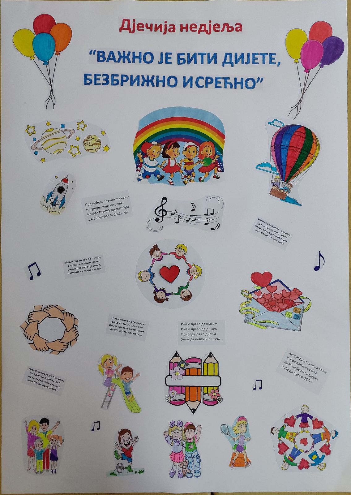 Ове године Дјечија недјеља је обиљежена у периоду од 6. до 12. октобра 2025. године под слоганом „Важно је бити дијете, безбрижно и срећно.“ Као и сваке године ученици и наставници наше школе имали су низ активности на ову тему. Ученици централне школе и подручне школе Павловац дјечију безбрижност и срећу представили су цртежима и још једном се подсјетили која права и обавезе имају као дјеца.