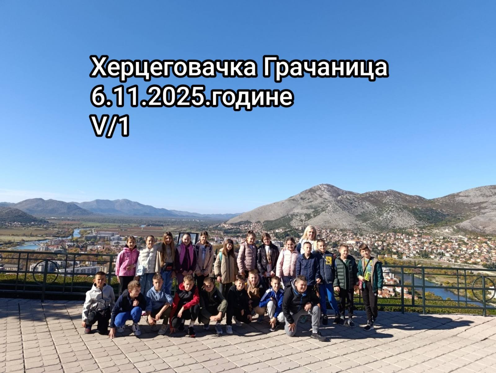 Ученици петог разреда наше школе боравили су у Требињу, у периоду од 3. до 7. новембра, у оквиру школе у природи. Овај едукативно – рекреативни боравак пружио им је прилику да уче ван учионице, истражују, развијају тимски дух и стичу нова пријатељства. Дани су им били испуњени разноврсним активностима – од шетњи и обилазака знаменитости до спортских игара и вечерњих дружења. У пратњи ученика били су, директор школе Мирослав Попржен, учитељице: Бранка Периновић, Милена Штула, Миланка Милаковић, Сњежана Оровац, Слободанка Леканић, Јелена Јевђенић и Славица Бунић. Школа у природи није само прилика за учење – то је и драгоцјено животно искуство које дјеца памте цијели живот. Враћају се кући богатији за нова знања, успомене и пријатељства.
