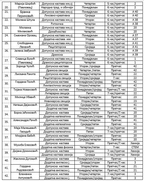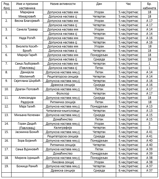Распоред секција и ваннаставних активности (школска 2025/26. година)